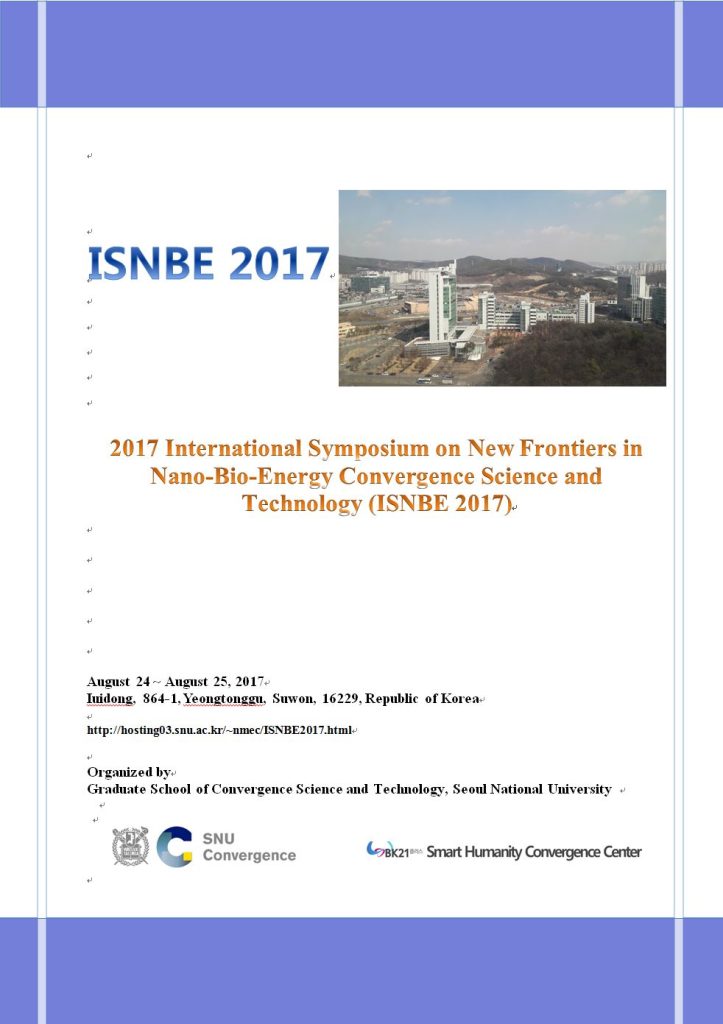 2017 International Symposium on New Frontiers in Nano-Bio-Energy Convergence Science and Technology (ISNBE 2017) 2017, 8, 24~25.