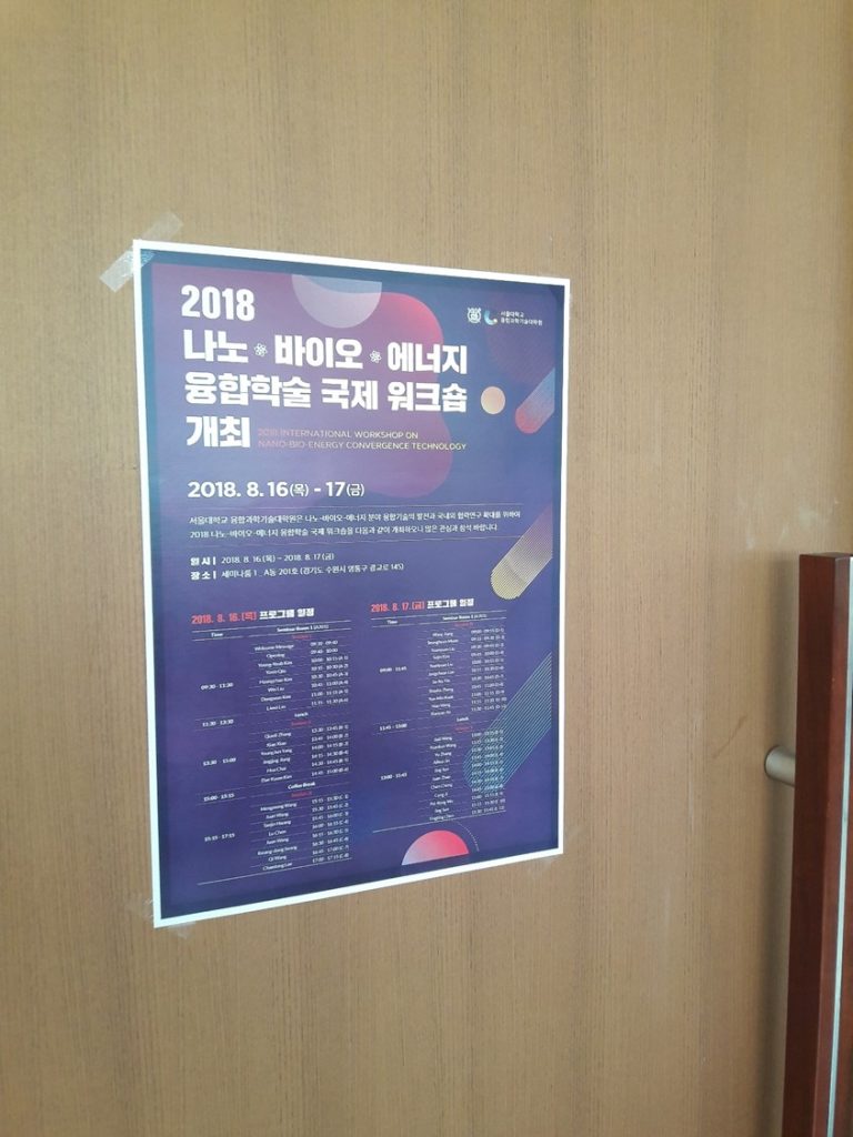(1) 2018 International Workshop on Nano-Bio-Energy Convergence Technology. Graduate School of Convergence Science and Technology, Seoul National University. Republic of Korea. August 16~17, 2018.